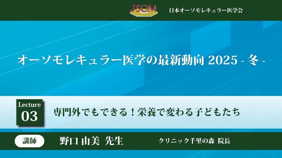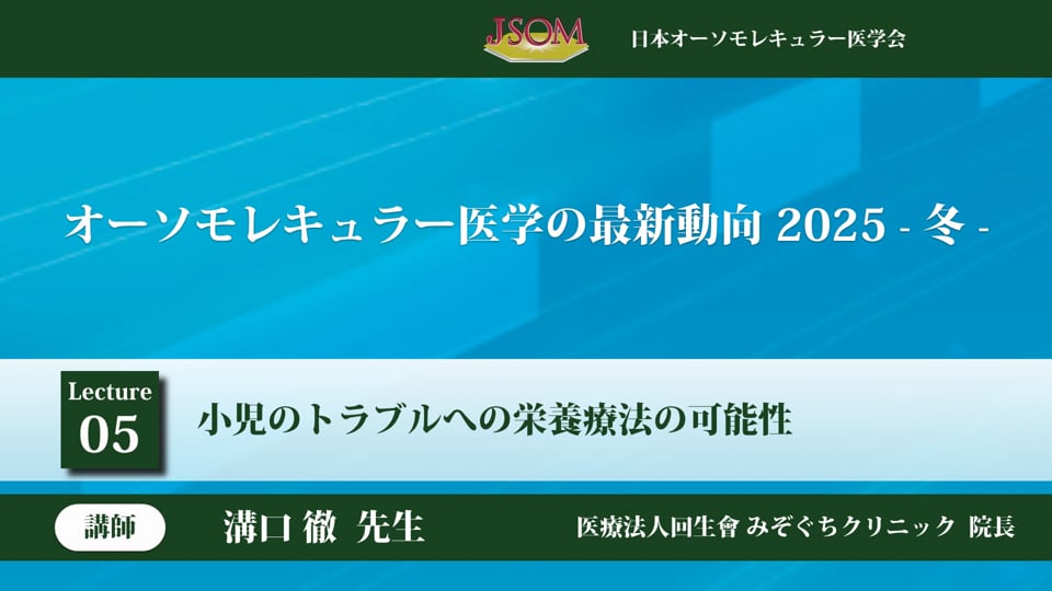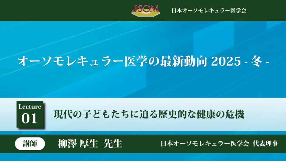 個別の病気 治療法・栄養 2021-02-10 【国際オーソモレキュラー医学会より】新型コロナウイルス感染予防について 風邪・感染症 個別の栄養素 この動画の作成者 柳澤 厚生 ( ヤナギサワ アツオ ) 鎌倉元気クリニック 一般社団法人日本オーソモレキュラー医学会 代表理事。鎌倉元気クリニック 名誉院長。 杏林大学医学部卒、同大学院修了。 医学博士。杏林大学医学部内科助教授を経て、2000年〜2008年同大学保健学部救 ... [続きを見る] ©︎本動画の著作権は一般社団法人 日本オーソモレキュラー医学会が保有しております。本動画の一部もしくは全てを当学会の許可なく転載・複製することは固く禁止いたします。 参考になった! 柳澤 厚生 (ヤナギサワ アツオ)先生の関連記事を見る アルツハイマーが不運や加齢のせ・・・ その他のタグ 記事 2025-06-06 12:00 ミトコンドリアと幹細胞を標的と・・・ ガン 記事 2025-01-10 12:00 柳澤 厚生 (ヤナギサワ アツオ)先生の関連動画を見る 新型コロナワクチン後遺症とファ・・・ 睡眠 その他の病気 個別の栄養素 個別の治療法 動画 2023-03-15 17:00 【国際オーソモレキュラー医学会・・・ 風邪・感染症 個別の栄養素 動画 2021-02-12 18:00 同じタグの記事を読む 現代の子どもたちに迫る歴史的な健康の危機 個別の栄養素 動画 2025-12-25 23:59 「処方薬によるマグネシウム欠乏症」Vol.4 個別の栄養素 記事 2025-12-12 12:00 小児のトラブルへの栄養療法の可能性 個別の栄養素 動画 2025-12-08 13:24 胎児の栄養心理学 個別の栄養素 動画 2025-12-08 13:23 専門外でもできる!栄養で変わる子どもたち 個別の栄養素 動画 2025-12-08 13:17