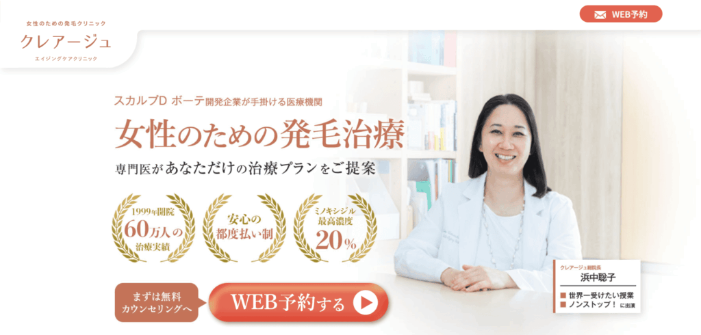公式サイト:AGA・薄毛治療ならヘアメディカルの発毛専門クリニック | クレアージュ