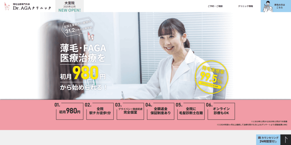公式サイト:【公式】Dr.AGAクリニック- 女性のための薄毛・AGA医療治療