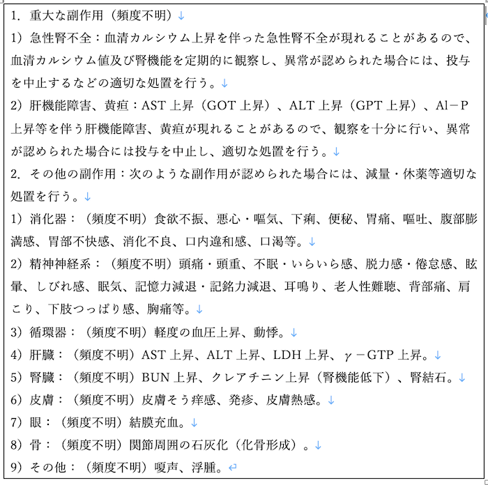 さらに、添付文書に記載されているように、ビタミンDを大容量で摂ると多少便秘気味になるという訴えを患者さんから聞くことがありますし、実際に報告もされています28)。